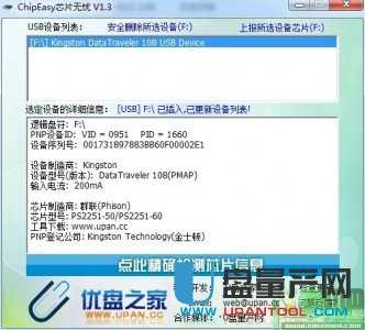 首先用ChipEasy芯片無憂 V1.62(u盤芯片檢測工具) 檢測U盤是否為群聯,和具體芯片型號,按檢測結果 再下載相對應的量產工具