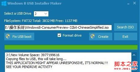 5、單擊“Create”按鈕開始制作Windows 8啟動U盤。