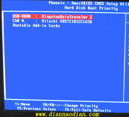上圖3:硬盤啟動優(yōu)先級(Hard Disk Boot Priority)選擇:使用小鍵盤上的加減號“+、-”來選擇與移動設備,將U盤選擇在最上面。然后,按ESC鍵退出,回到圖2的設置界面。