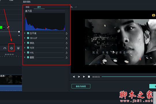 4、高級(jí)調(diào)色功能可以幫助用戶將原本太過(guò)灰暗的色彩進(jìn)行調(diào)節(jié),通過(guò)對(duì)白平衡、暈影和光效等內(nèi)容的改變,讓你的視頻呈現(xiàn)完全不同的風(fēng)格,用戶還可以對(duì)不同的視頻片段修改不同的數(shù)值,總體來(lái)說(shuō)非常值得一試的,如下圖所示: