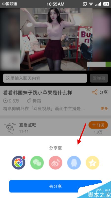 找到我們需要下載的視頻,看到右下角有【分享】按鈕,這個時候點擊分享,把視頻分享到QQ上面。