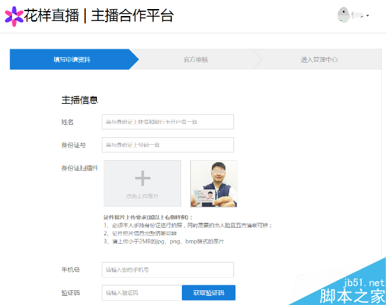1、登錄網址,新主播注冊頁面: