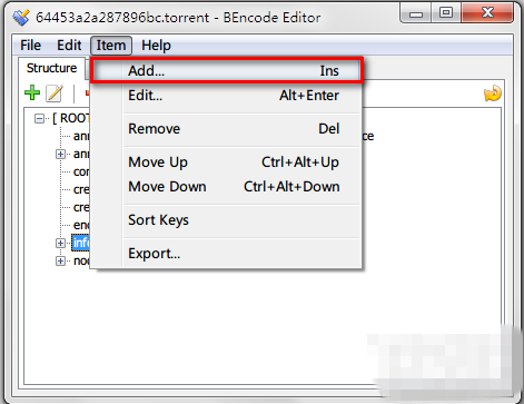 4:在窗口里選擇 AS: 下拉框里選擇Child (很重要,編輯錯誤會導致種子損壞,請先備份) Name 和Value 隨便了