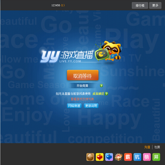 Step9:點擊“開始直播”后需要輸入直播介紹;直播介紹填寫完后屏幕中間按鈕更改為“取消等待”,此時請打開所要直播的游戲(目前YY游戲直播支持上千款主流游戲,可在“游戲支持列表中”查看)。