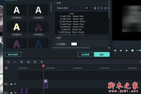 3、片頭添加完成后,就可以添加片尾了,所謂的片尾就是指視頻或電影在播放完成后的人員名單與介紹,大家可以在右邊的播放窗口看到片尾的具體效果,最后將片頭與片尾放置到合適的位置,如下圖所示: