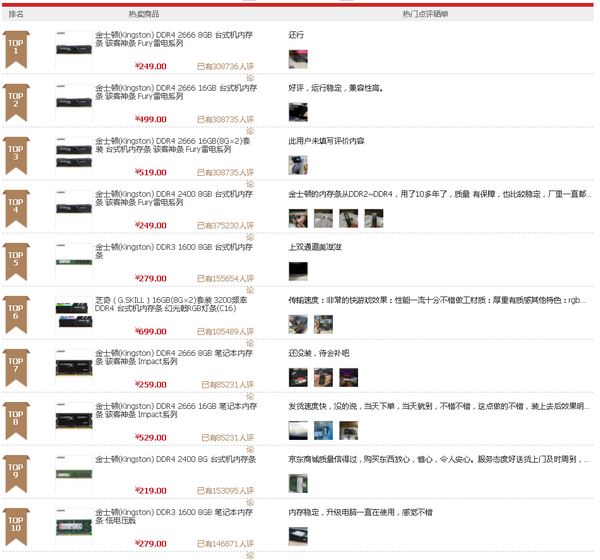 內存條天梯圖2019年12月最新版: