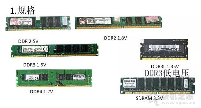 有DDR 、DDR2、 DDR3、 DDR3L、 DDR4 甚至還有更老的SDRAM內存。內存很好辨認,只需要看內存上的標簽貼紙,或者看缺口的位置就可以分辨了。