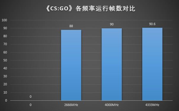 《CS:GO》在全球游戲市場的火爆程度相信不需要筆者贅述了,由于游戲整體已經非常成熟,所以內存等配置硬件的依賴性已經大大降低,所以我們可以看到內存頻率的高低并沒有對FPS類游戲造成很明顯的差異性。