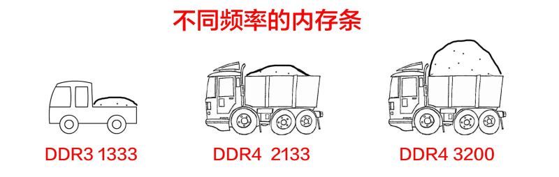 數據跟網購的商品一樣的,都是需要經過運輸才能到達我們(CPU)手中,如果說內存條是一個臨時存儲商品的中轉倉庫,而數據就是貨物的話,那么內存條上的頻率可以理解為運輸貨車的載重量,頻率越大,貨車一次的載能運載的數據量也就越多。而我們經常提到的內存條超頻,就是讓這輛貨車超載運行,以此來獲得更多的數據傳輸量。(由于現在大多數正規內存條都是終身質保的,所以無需擔心它的壽命問題)