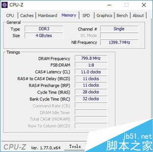 為了方便進行比較本次筆者還選擇了一款芝奇的4G DDR3 1600內存進行比較,由于條件所限,筆者在整個DIY部門僅僅找到這么一根DDR3 4G內存,僅供玩家進行對比參考。首先我們來使用CPU-Z看一下款內存的基本信息。