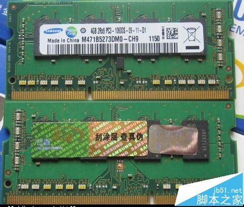 3、那是不是8顆粒的4GB內(nèi)存都是假貨呢?不是的,其實8顆粒的4G內(nèi)存條是可以做出來的。這個才是真正的8顆粒的4G內(nèi)存,規(guī)格是1333,型號為M471B5273DM0-CH9跟前面的標號相比。