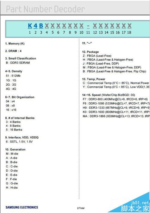 6、這是一條現(xiàn)在能買到的黑條產(chǎn)品,型號為M473B5273DH0-YK0其實后綴的YK0很好解釋,Y=1.35V低電壓,K0=DDR3-1600令很多本友感到不解的地方就是為何M4后面跟的代碼是73而不是金條上的71由于官網(wǎng)上下載的ddr3_product_guide_jan_12-0.pdf也就是12年1月最新版的DDR3技術(shù)手冊下載后提示無法打開,因此,無法從官方定義的角度來解釋,而早期的技術(shù)手冊經(jīng)查也沒有對于73的解釋。