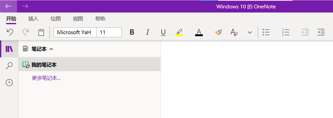 1、下載OneNote(UWP版),打開該軟件后,我們會看到如下的頁面。