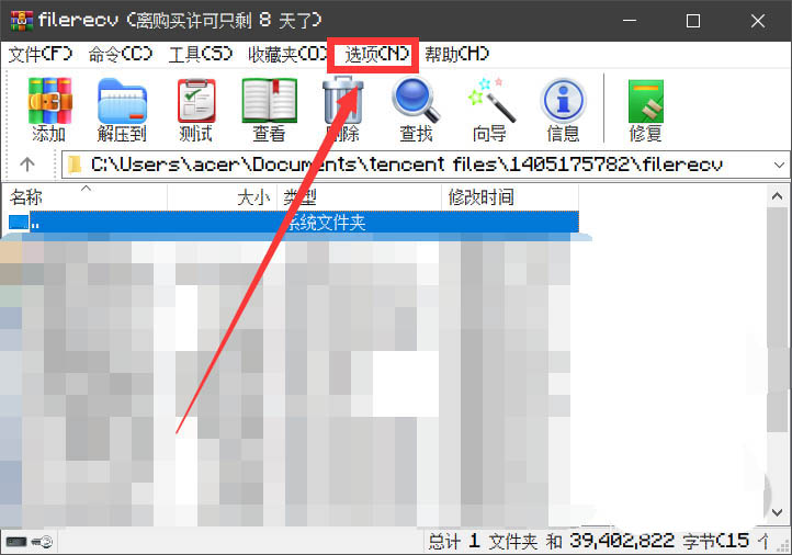 3、在軟件界面的上方,我們需要點擊“選項”按鈕,進入選項菜單中。