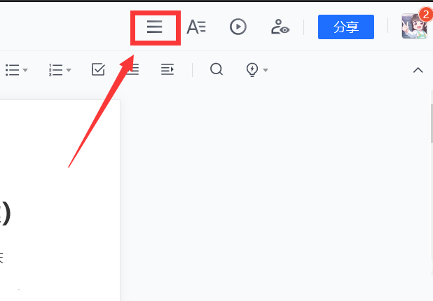4、在文檔界面中,點擊右上方【三橫】符號。