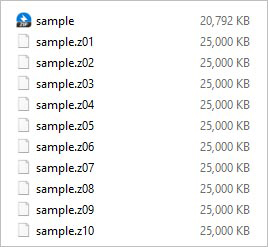 4、開始壓縮。除了檔案文件,分卷文件也會創建到目標文件夾中并將編號(如01、02、03,…)添加到其文件名。 (文件名的格式取決于文件的檔案格式。)