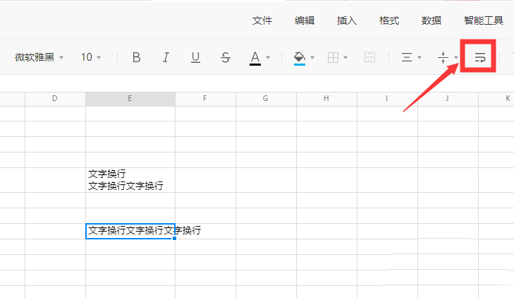 2、輸入文字后,點擊自動換行的圖標,單元格文字會根據列寬自動換行