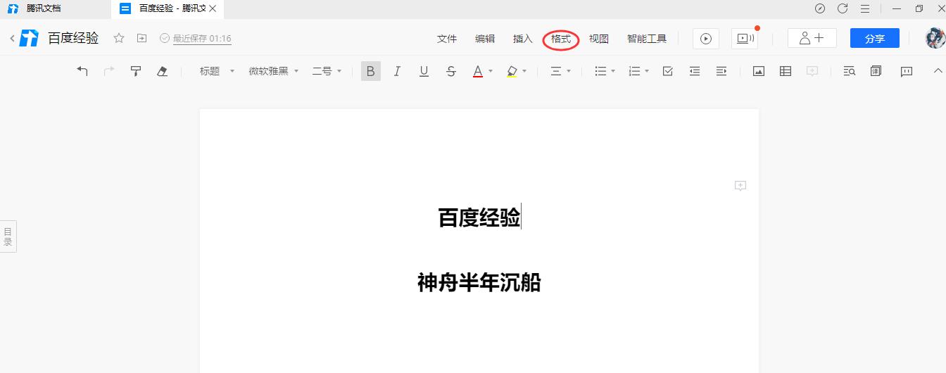 3、在打開的文檔界面中,點擊上方一欄的格式按鈕