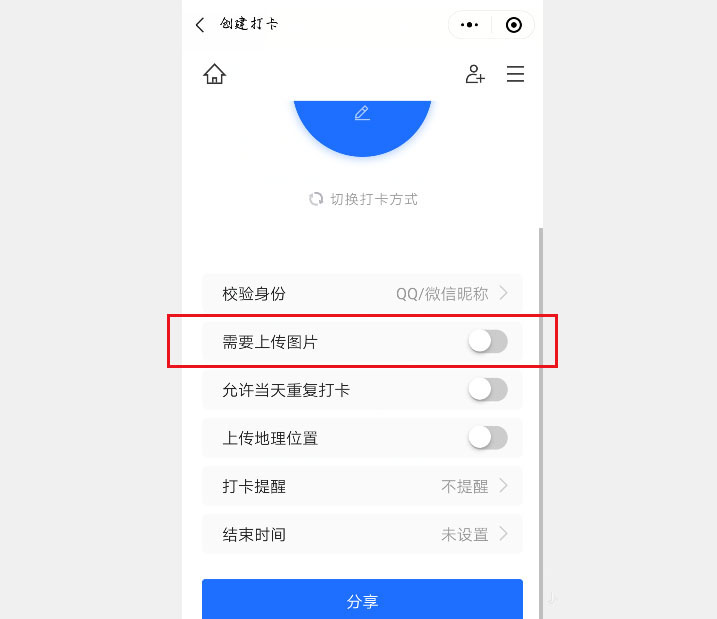 4、打開需要上傳圖片后的開關按鈕。