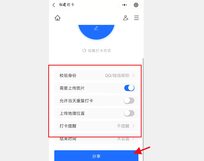 3、選擇創(chuàng)建打卡。