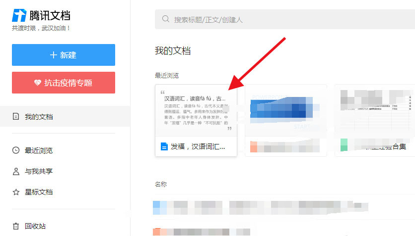 1、打開騰訊文檔首頁,找到發布為網頁的文檔。