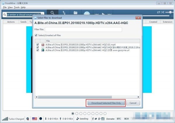 選擇想要下載文件,點擊Download Select Files Only只下載選中的文件,就可以開始下載;