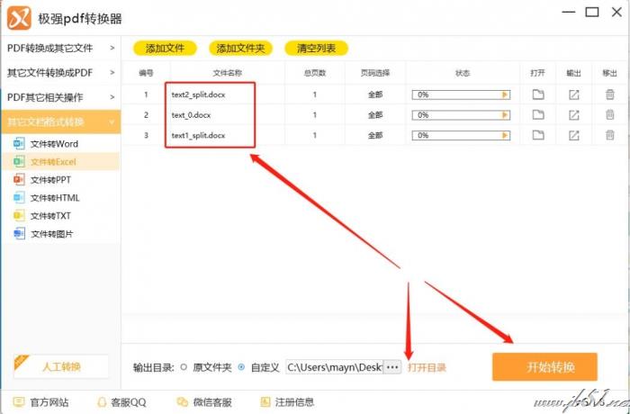 4.將文件添加進來后,如果文件數量多可以按住鼠標左鍵對文件進行拖拽排序,確定好后,點擊界面下方的“打開目錄”設置文件轉換后的保存路徑,設置好后點擊“開始轉換”