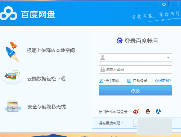 2、輸入自己的賬號、密碼登錄網(wǎng)盤。或是選擇第三方賬號登錄。