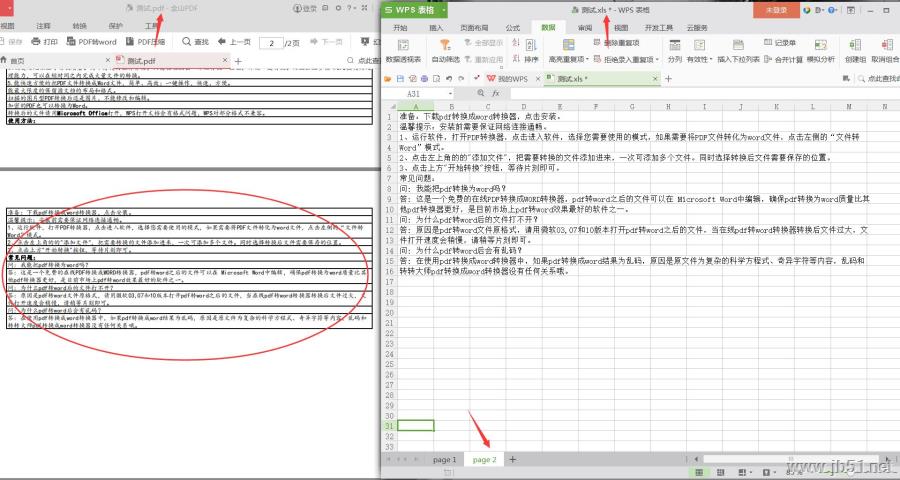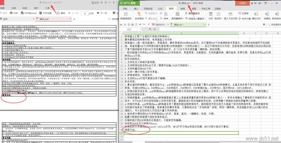 3.轉換文件與原文件(左)對比。注:PDF文件中,每頁轉換過來為一個獨立的工作表。