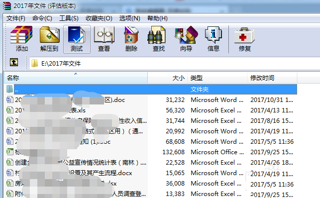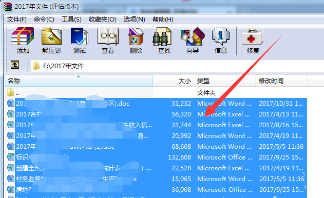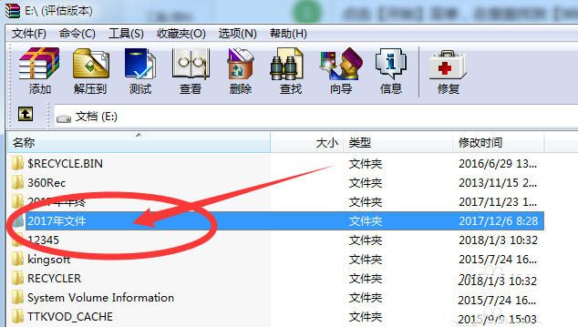 2、打開【WinRAR】軟件后,找到你需要生成目錄的文件夾,并點擊進入這個文件夾,如下圖,以【2017年文件】為例。