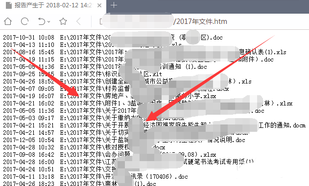8、打開在桌面生成的【2017年文件.htm】文件,這時你會看到,原來文件夾內的所有文件名稱都保存在了這個文件里。