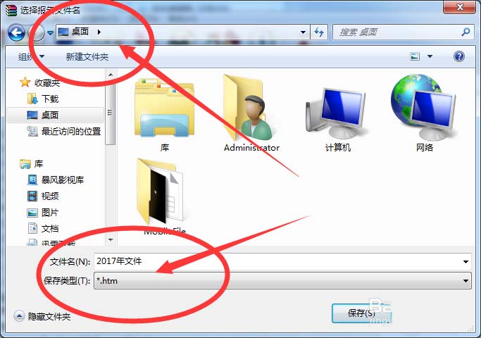 7、我們選擇保存到【桌面】,生成的格式為【htm】網頁格式。