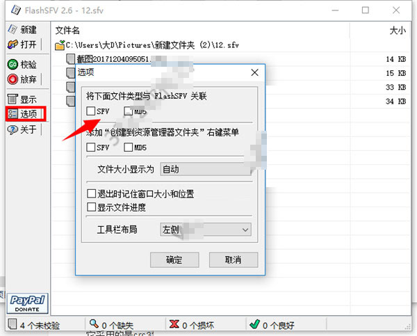 5、最后講下選項設(shè)置。這里有設(shè)置關(guān)聯(lián)SFV、MD5兩種格式。