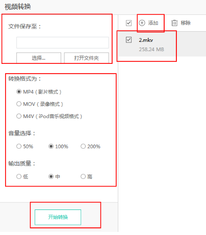 3、之后再設置一下轉換后視頻的存儲位置、轉換格式、輸出質量等,設置完畢后點擊“開始轉換”就可以了。