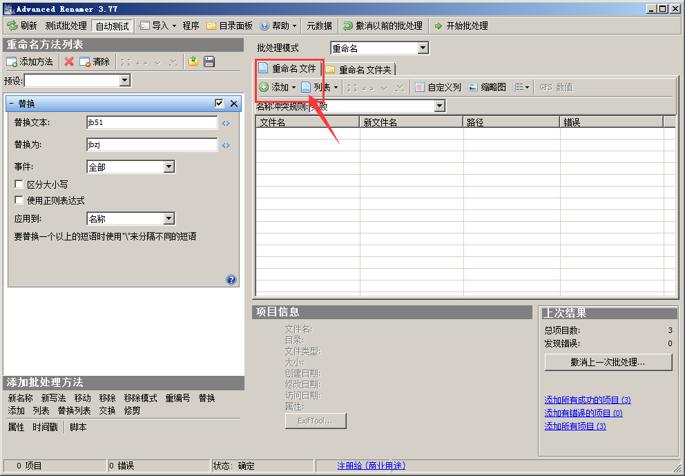 打開運行界面以后,左側的 添加方法 > 然后 替換