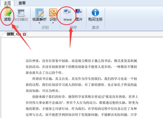 2、捷速ocr軟件成功讀取PDF文件后,我們可以點擊頂部的word圖標,點擊后,我們之前讀取的PDF文件就生成了word文檔,而且生成后word文檔會自動打開,這個時候可以對其進行編輯了。