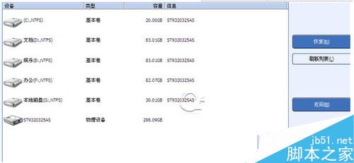 這個就是你的整個硬盤,你的所有資料都曾經在這里面,在右邊有個“恢復”的選項,選擇后可以對想要恢復的文件進行選擇類型