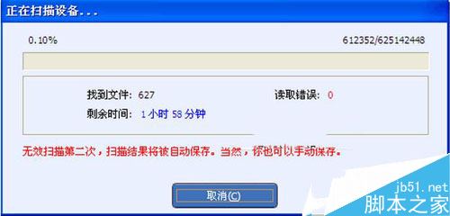 之后就會對你選擇的分區或者整個硬盤進行掃描,篩選出你所需要恢復的類型文件