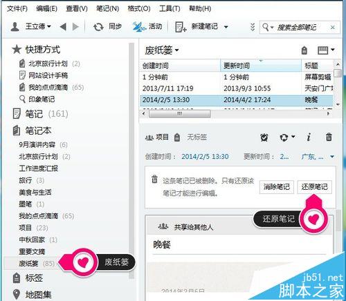 2、共享筆記本筆記被刪除后,會進入共享筆記本創建者的廢紙簍中;
