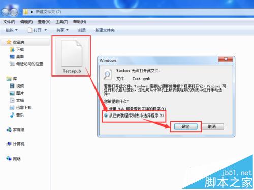 2、雙擊Epub格式的電子書文件,然后選擇“從已安裝程序列表中選擇程序”。