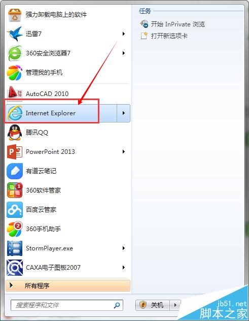 1、首先打開(kāi)在開(kāi)始菜單中打開(kāi)IE瀏覽器,如圖所示
