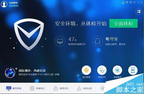 1、打開電腦管家首頁,即全面體檢頁,在底部找到一項叫做工具箱的項目,一般位于右下角。