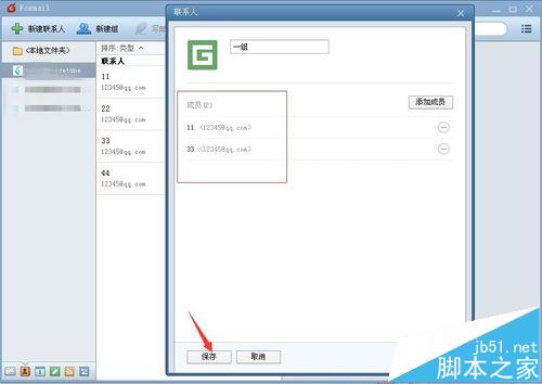4、聯系人添加完成后,即可以看到改組列表中所有聯系人信息。發現有誤添加進來的或者是漏加的,此時可以點擊右邊的“添加成員”按鈕來進行修改。確認無誤后,點擊“保存”按鈕。保存后有需要修改依然可以點擊編輯按鈕來修改。