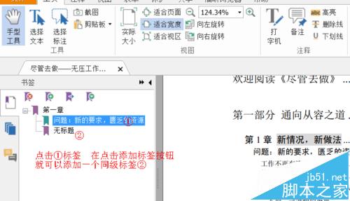 4、如圖,點擊①書簽,在點擊【添加書簽】按鈕,就可以添加一個同級的書簽