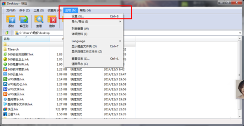 打開(kāi)快壓壓縮軟件,我們使用“選項(xiàng)”菜單中的“設(shè)置”項(xiàng)。