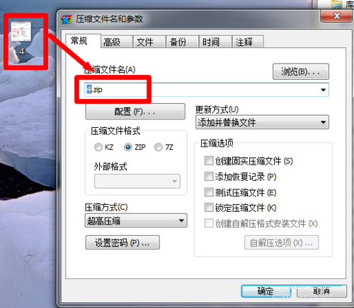 現(xiàn)在,我們將一個(gè)文件進(jìn)行壓縮的操作,發(fā)現(xiàn)默認(rèn)的格式就是剛才設(shè)置的格式。
