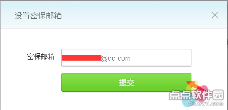新彈出窗口,設(shè)置密保郵箱,輸入你要設(shè)置的密保郵箱,點(diǎn)擊提交