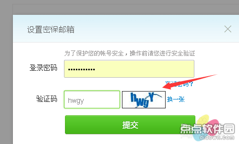 彈出一個(gè)設(shè)置密保郵箱的窗口,輸入密碼及驗(yàn)證碼,提交