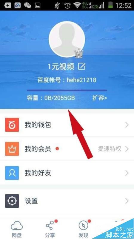 6、安裝成功后,打開剛剛安裝的”百度云“軟件,顯示后直接登錄之前第一步注冊的賬號,登錄進去后你在點擊右下角的“關于我”,接著你就會看到你的網盤空間擴展到2055G!在次,再也不用擔心不夠網盤用了!