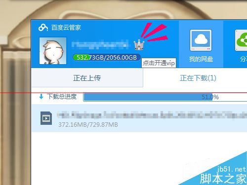 1、在電腦上已打開百度云管家的前提下,點擊已登錄帳號右邊的VIP圖標開通